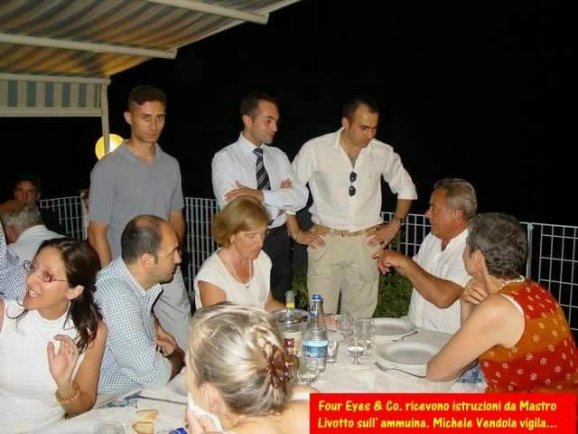 Giocavano in casa i Livornesi Mario Acanfora (55/59) e signora, Francesco De Luca (49/50) e signora, Natale (Totti) Pentimalli (56/59) e signora, Carmelo Burgio (72/76) e signora, Dario Lo Prejato (78/81) e signora, unitamente a 12 tra Ufficiali e allievi dall' Accademia Navale: Giuseppe Quattrocchi (96/99), Giovanni Torraco (96/99), Andrea Palma (97/00), Fernando Pucciarelli (98/01), Marco Rossacco (99/02), oltre al passepartout delle Scuole Militari Marco Epifanio (se l'e' fatte tutte, e per fortuna sono solo tre...) e a vari ex Allievi del Morosini. Altri 9 allievi erano stati consegnati la mattina, tanto per non smentire la schiatta...