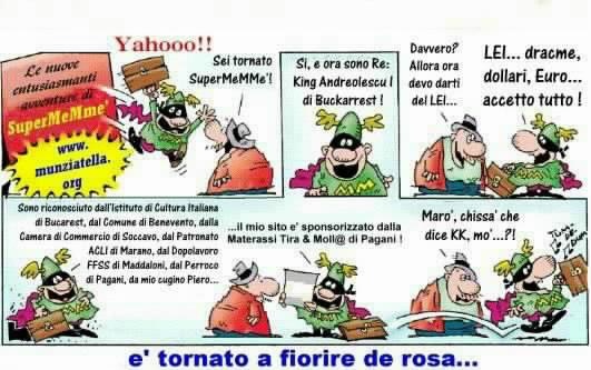 Se n'era stato tranquillo per un po' ce l'eravamo quasi scordato... Ed invece eccolo irrompere colla cybercavalleria: munziatella.org , subito definito (modestamente) IL SITO DEGLI EX ALLIEVI DELLA SCUOLA MILITARE NUNZIATELLA, roba che se uno non sapesse che c'e' un sito ufficiale quasi quasi... E poi: riconosciuto da tutti, fa convenzioni colle Scuole Rumene, lo citano gli Istituti di Cultura in giro per il mondo.